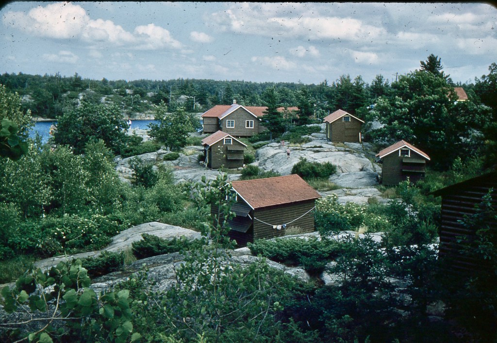 The glacier-smoothed, pink and grey rock was sprinkled with low stands of green juniper bushes which eked out a living on less than three or four inches of hard-earned sediment and gravel. Groves of young red oak trees occupied the site, anchored by tall white pines, quite symbolic of the northern Ontario 30,000 Islands—windswept, stately and rugged, all at once. A population of 160 campers and staff romped over and roamed the site, on their way to skills and sports sessions.