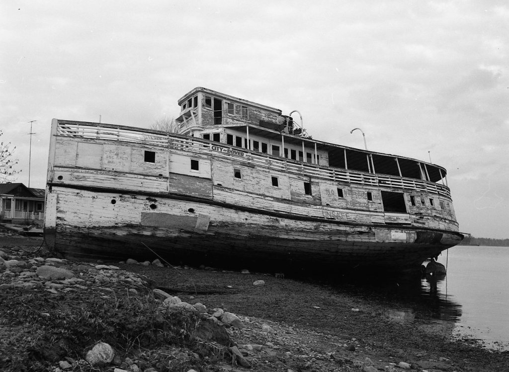 The timeline of my story however was suddenly altered. According to all reports, the boat was no longer on the water by 1967, the summer of our last meeting in my faulty memory. In fact, there are images of the once proud steamer lying on its side like a bloated elephant, circa 1965.