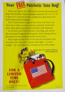 The tote bag is a premium-with-donation offer from VFW.