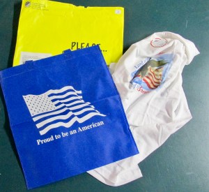 DVNF throws in the bag and a T-shirt with their request for donation.
