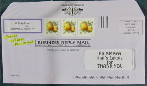 St. Joseph’s sharpens their pencil a little more, and only provides 3 one-cent stamps, but adorns their BRE with a faux return address label in my name. How can I throw this out?