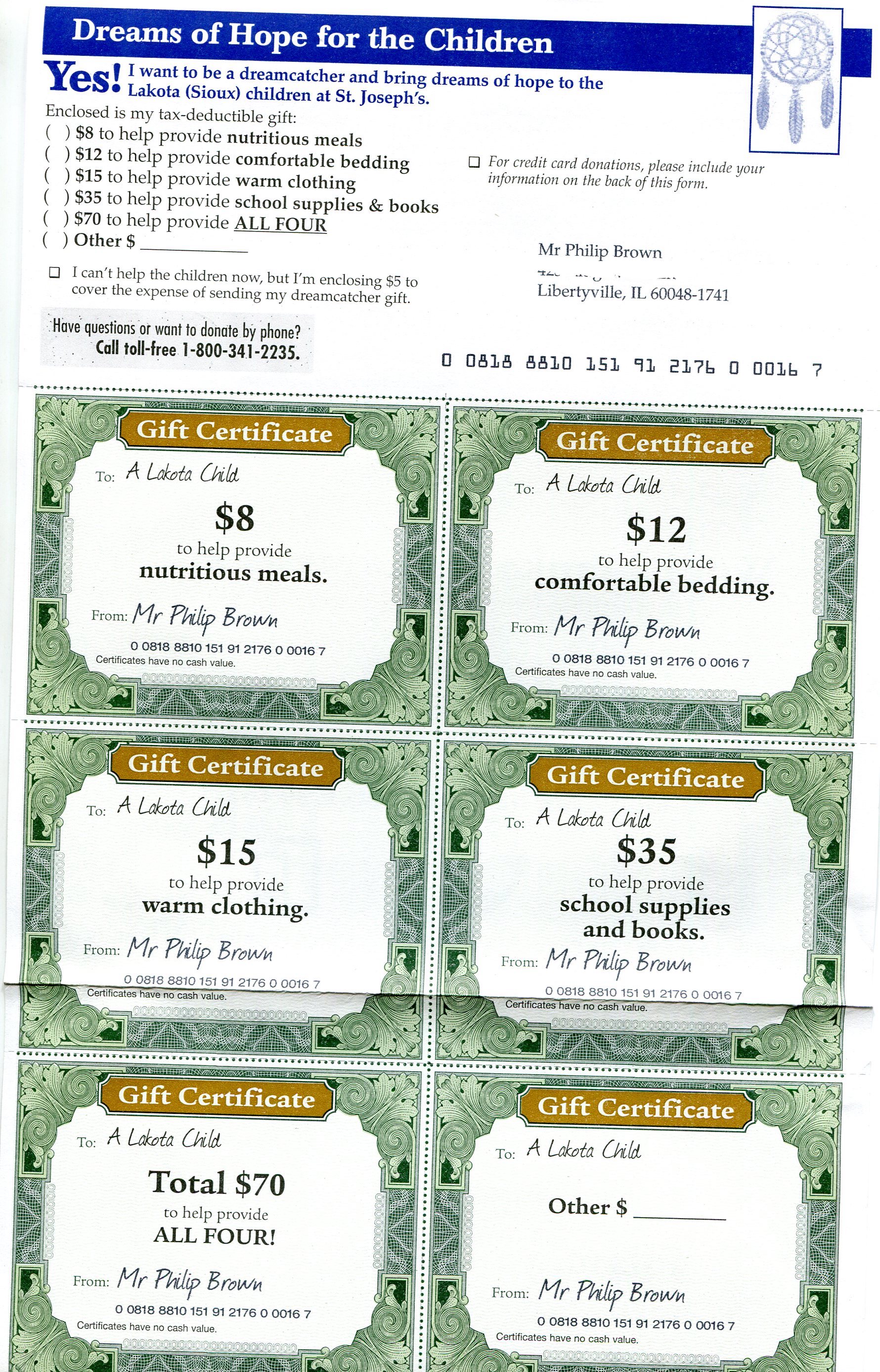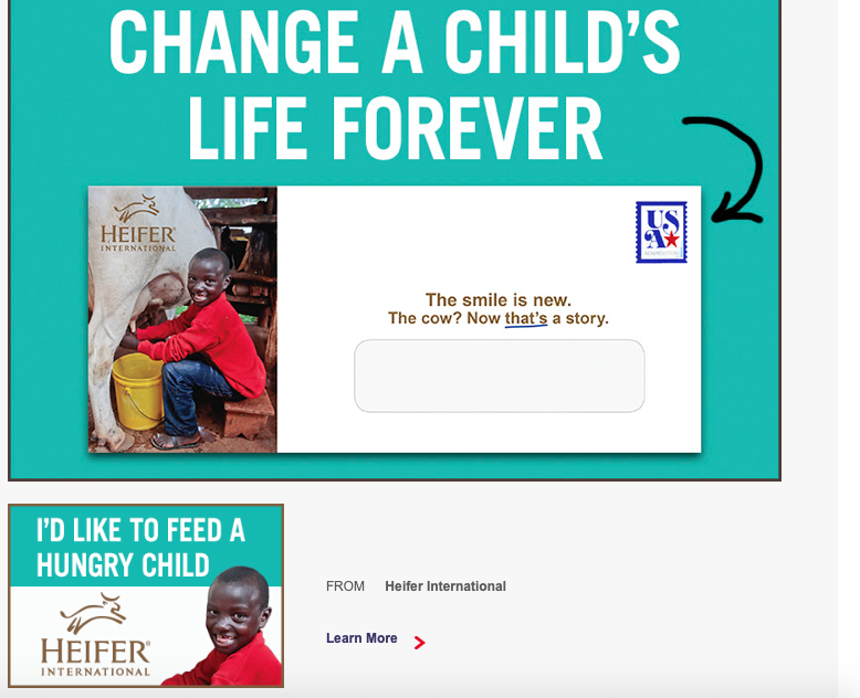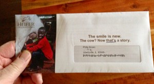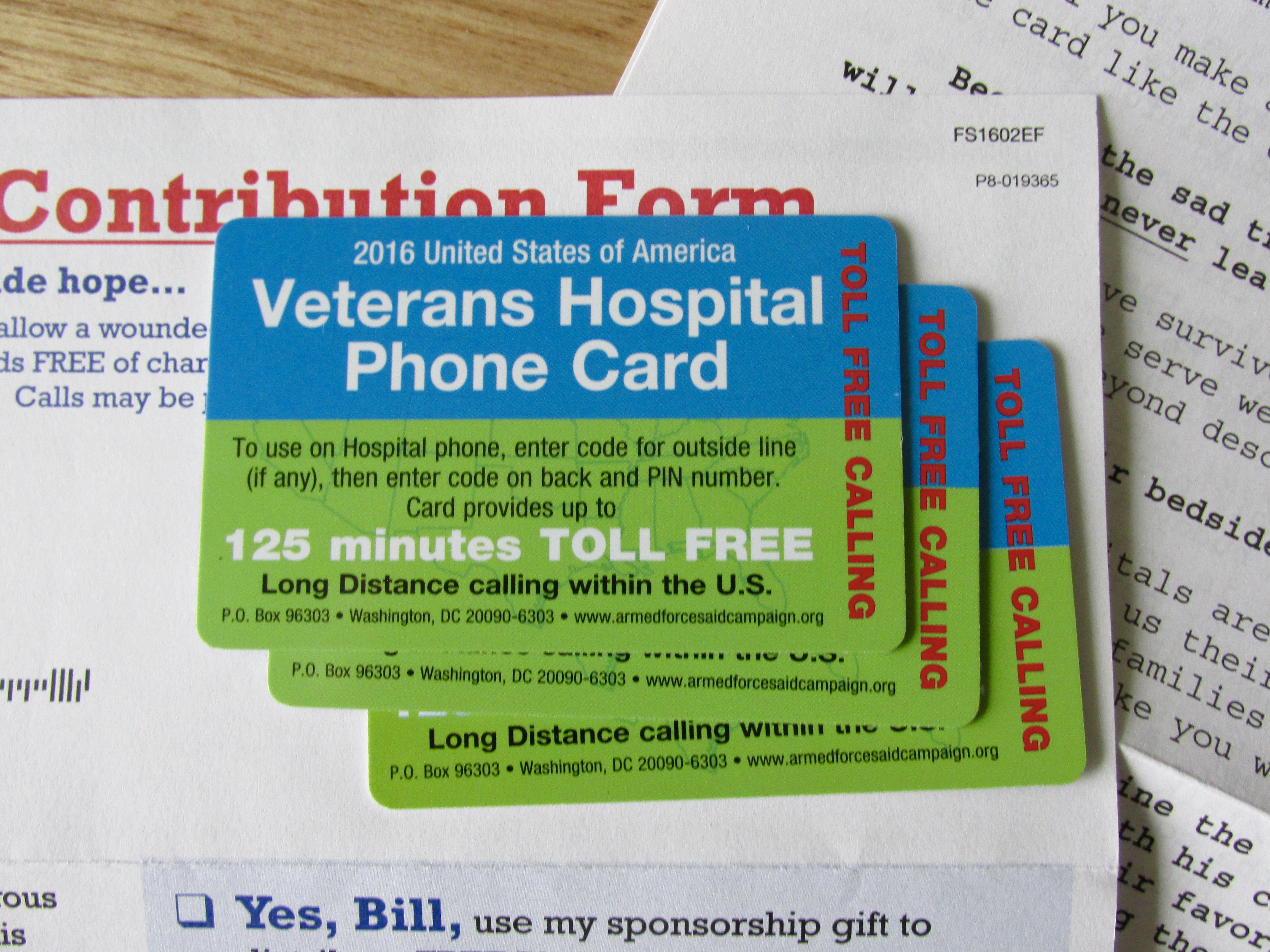 Help Our Wounded, and Armed Forces Aid Campaign have learned how to affix 3 plastic phone cards to a page. Technologically, this is pretty cool, if not done by hand. The cards are stuck on top of each other and appear jumbled through the large glassine window….as if they were thrown in quickly, sealed and run off to catch the 3 o’clock mail. The impact, especially for the uninitiated such as me, is strong. Their job is to get the envelope opened, and indeed, the ploy works. Help Our Wounded, aka Healing American Heroes is not found on Charity Navigator. My bet is the mailing costs 50-60 cents all-in.