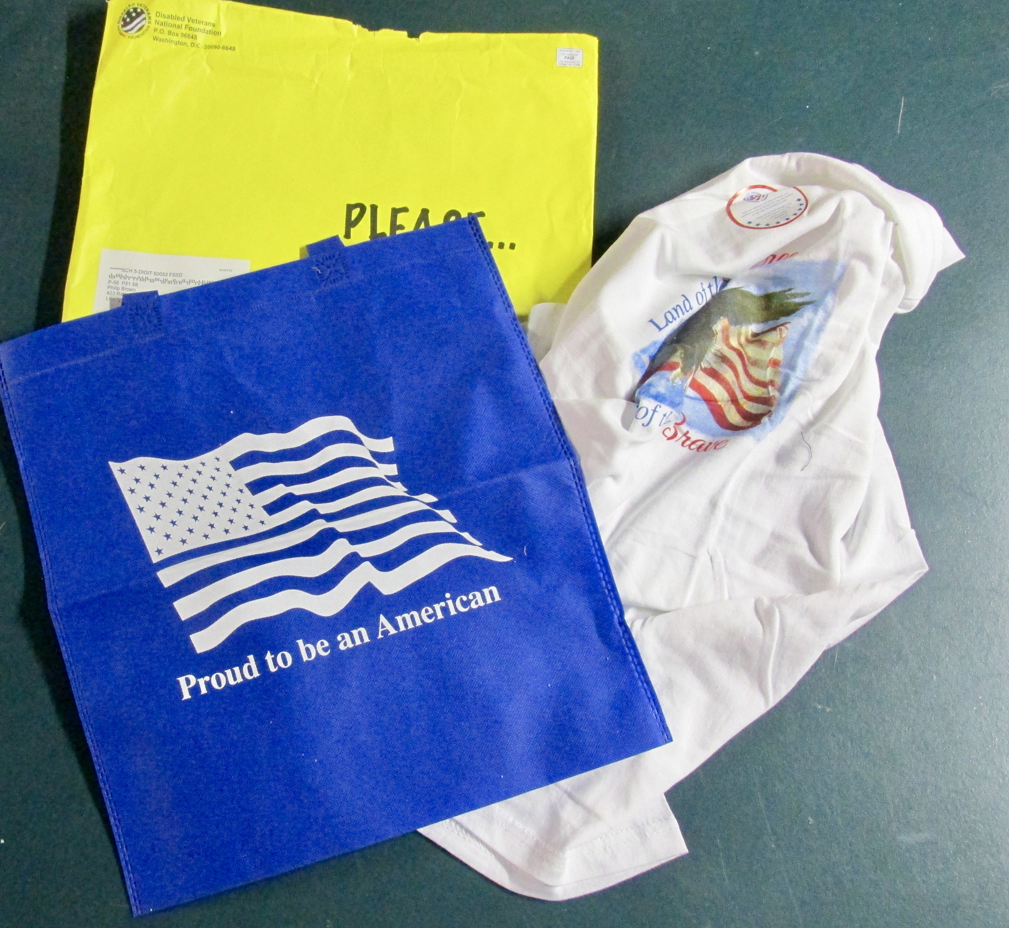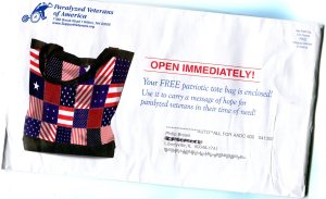 The USO is the most conservative kit to ask us for a donation, and that is in return for a genuine Stars & Stripes Flag plus good feelings. I included this under-played kit because of their creative use of postage.