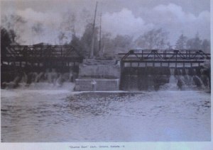 1989– Tom with his grandson and friend paddling the Grand River in his Pal, “Hochelaga”.