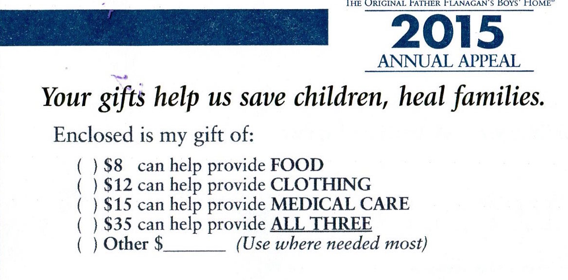 For instance, if a charity spends $1,000 to mail 3,000 letters, it is because they expect to get a 2% response…60 donations, at a cost of $16.66 each.