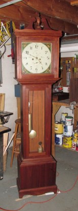 Today, the revered piece quietly and solemnly ticks away beside my workshop bench in the basement.  It’s not exactly a man cave down there, but it’s home to the clock.  I visit regularly, and address it as my old friend, winding up the 88’s, a reminder of my heritage, and its place in our family.