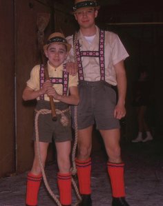 All of these things are indelibly etched in my memory for the years that I participated. The experience of putting on a show, the excitement and tension of huddling behind a backdrop, surrounded by giggling groups of pretty girls, goofy guys dressed in party gear and faces smeared in grease paint, lipstick and Nivea cold creme like Mardi Gras, waiting for a cue…and the music would start up, the lights dimmed, the spots went on, out we went, and the crowds would cheer… it was a special time.