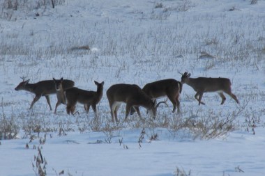 A portion of the 28 white tail deer that grazed on January 20, 2019. Not a coyote in sight.