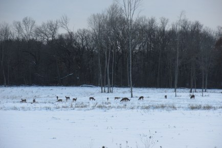 As an FYI, the Lake County Forest Preserve is closed at night until March because they are thinning out the deer population. In their books, 15-30 deer can safely occupy a square mile (640 acres) of open land. Yet here we have 28 deer grazing on the corner of the 33-acre open patch. Maybe they hale from St.Mary’s and Pine Meadow golf course. Interestingly, on the Forest Preserve website I picked up their regrets about development and how it affects Lake County’s natural resources: