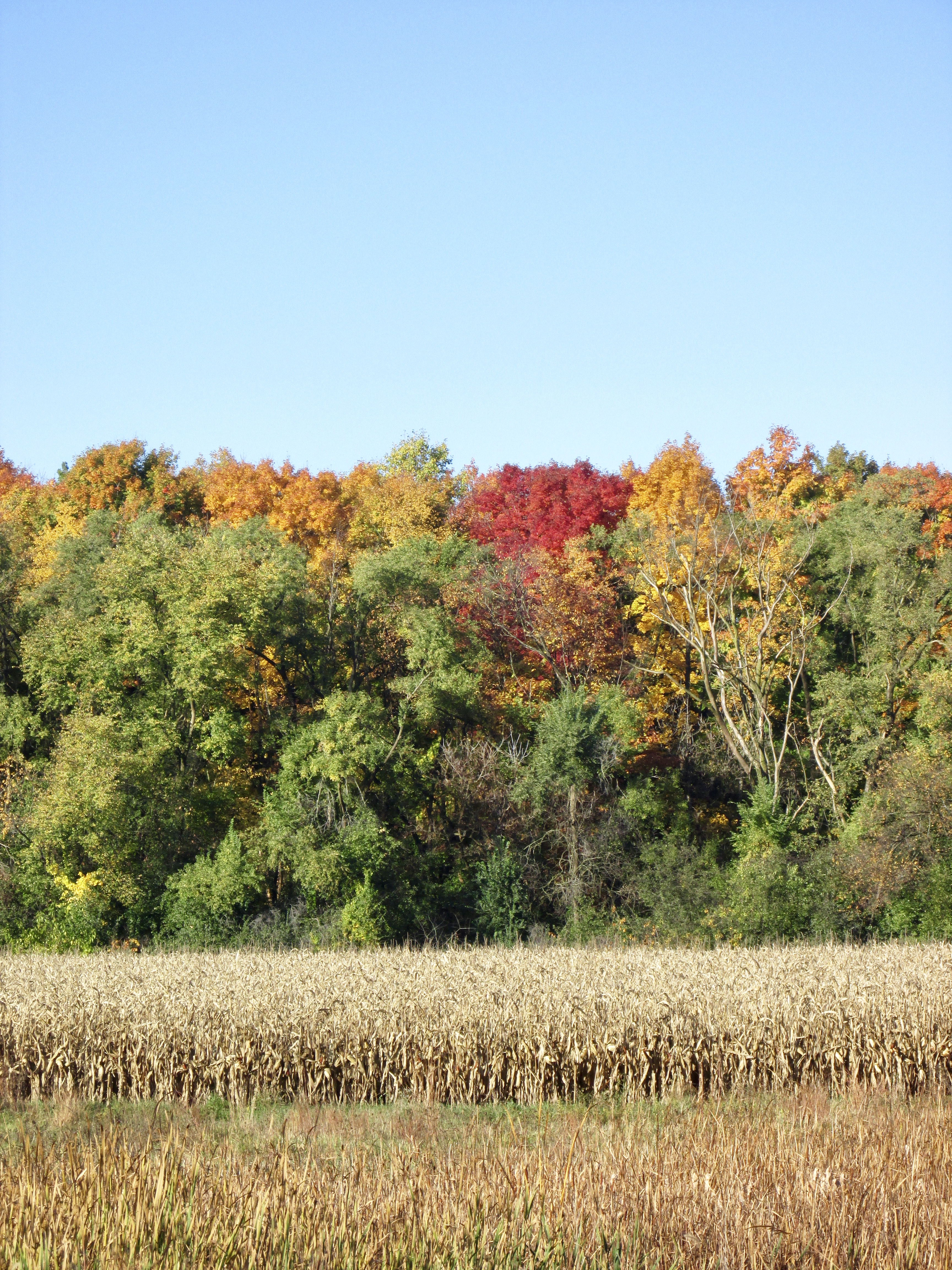 I mentioned passers by. Approximately 20,000 motorists pass the woods every day. Year after year the woods have been the backdrop to the driver’s view on a seasonal corn crop that has graced the parcel forever, accented by a colorful palette of leaves each fall.