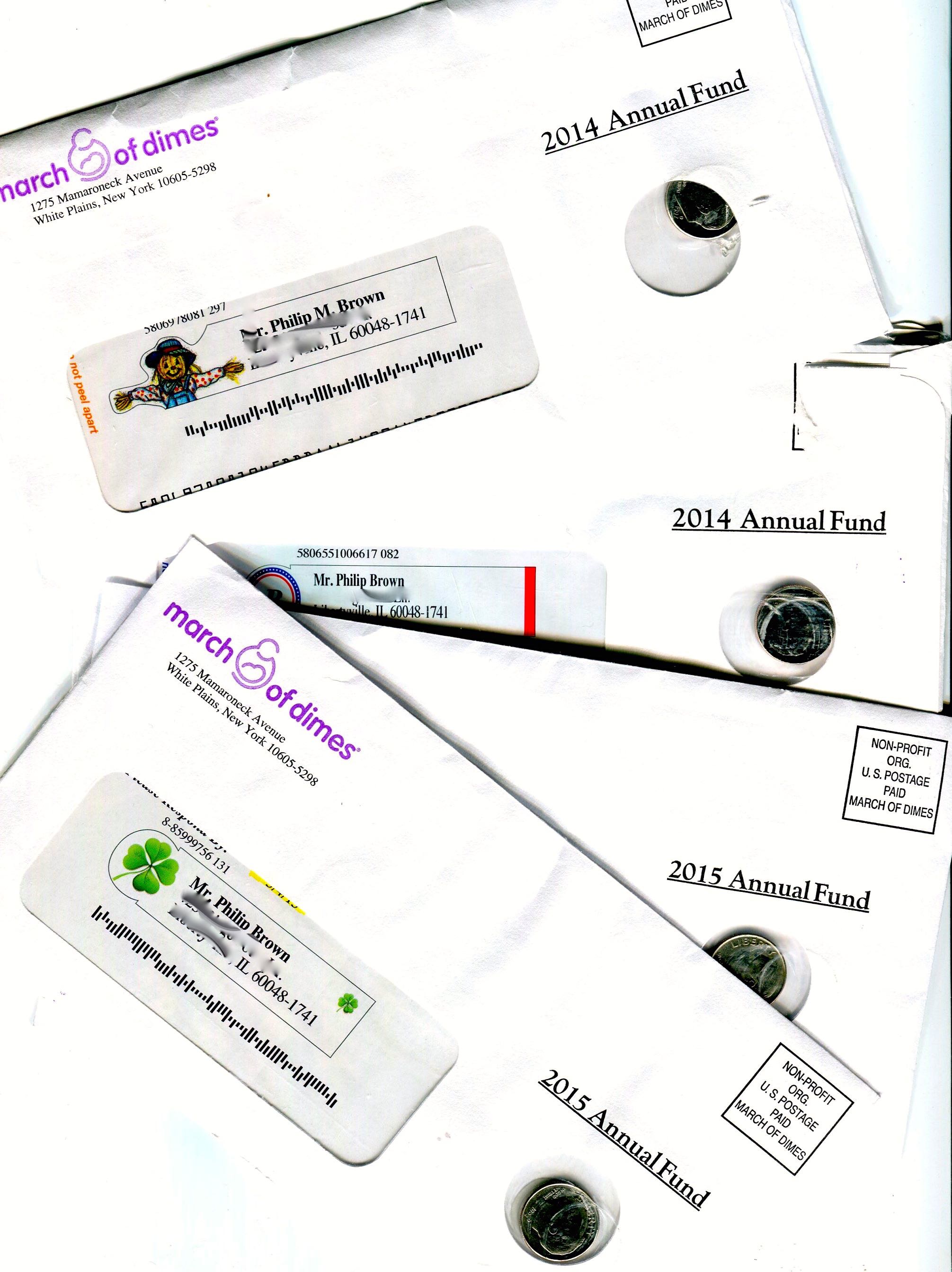 As you can see, these kits range in cost from 40 cents to perhaps $5 each all-in. Can a non-profit actually make a profit from these mailings? Check the Charity Navigator for details. You will be enlightened.